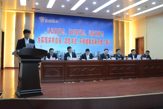 司相芳總經(jīng)理在會議上以《認識新常態(tài)、面對新常態(tài)、適應(yīng)新常態(tài),為實現(xiàn)求存自強、渡危求進、平穩(wěn)健康發(fā)展而努力奮斗》為主題,作了重要講話。司總首先對2014年的工作進行了總體評價。司總說,過去的一年,公司經(jīng)受的重大考驗接踵而至,面臨的內(nèi)外形勢變化多端。在這種背景下,取得這樣的成就,他要為大家點贊。