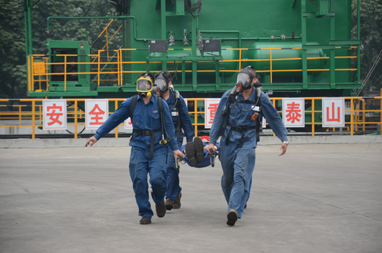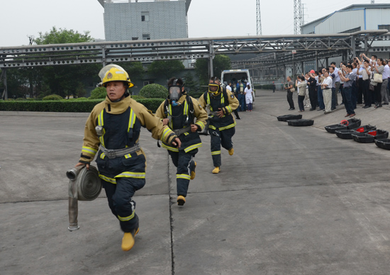 本網(wǎng)訊 5月29日上午,濟寧市第二次安委會成員單位會議暨?;沸孤?yīng)急救援演練在山東榮信煤化有限責(zé)任公司舉行。國家安監(jiān)總局呂海燕司長出席會議并對演練進(jìn)行點評,濟寧市委常委、副市長周洪出席會議并作重要講話,濟寧市公安局局長周鳳文,安監(jiān)局局長陳魯起,鄒城市委副書記、市長謝成海,副市長劉剛等觀摩演練并參加會議,公司總經(jīng)理司相芳陪同觀摩演練。濟寧市安委會成員單位負(fù)責(zé)同志,各縣市(區(qū))分管縣市(區(qū))長、安監(jiān)局長,40余家重點危化品企業(yè)負(fù)責(zé)同志觀摩演練并參加會議。 與會人員首先觀摩了榮信煤化危險化學(xué)品泄漏應(yīng)急演練活動。上午9:00,周洪副市長宣布:“濟寧市安全生產(chǎn)月活動啟動儀式暨?;沸孤?yīng)急救援演練開始!”本次演練以機焦分廠上升管1號放散管根部因銹蝕突然破裂造成大量煤氣泄漏,一名員工因吸入大量煤氣導(dǎo)致中毒為模擬場景實施救援。煤氣泄漏后,在撤離過程中一名員工因吸入大量煤氣導(dǎo)致中毒暈倒,另一名員工撤離到安全區(qū)域后立即通知值長請求救援。值長立即向分廠領(lǐng)導(dǎo)匯報并撥打120,分廠領(lǐng)導(dǎo)接到事故報告后立即下達(dá)“停止生產(chǎn)、設(shè)備斷電、維修人員排查泄漏原因”的口令,給調(diào)度室匯報請求公司救援并立即趕往現(xiàn)場。公司應(yīng)急救援小組人員穿戴防護(hù)用具后迅速進(jìn)入現(xiàn)場救出中毒員工,將爐頂員工疏散至安全區(qū)域。公司調(diào)度室立即撥打119請求支援,公司領(lǐng)導(dǎo)及各部門負(fù)責(zé)人第一時間到達(dá)事故現(xiàn)場成立救援指揮部。指揮部分別向市安監(jiān)局、質(zhì)監(jiān)局、環(huán)保局、衛(wèi)計局、公安消防大隊報告事故情況,請求地方救援。經(jīng)過維修人員緊張的排查、搶修,將管道泄漏部位修復(fù),險情得以控制。 救護(hù)車、消防車趕到現(xiàn)場后,醫(yī)護(hù)人員查看中毒者傷情,隨即用救護(hù)車將其送往醫(yī)院,消防車開至現(xiàn)場向設(shè)備泄漏位置用水槍稀釋,防止發(fā)生火災(zāi)。環(huán)保局、安監(jiān)局帶領(lǐng)相關(guān)人員到達(dá)事故現(xiàn)場,安監(jiān)局負(fù)責(zé)指揮協(xié)調(diào),環(huán)保局對周圍環(huán)境進(jìn)行了監(jiān)測,經(jīng)環(huán)境檢測沒有對周圍環(huán)境造成污染。本次演練結(jié)束。 演練結(jié)束后,在公司禮堂召開濟寧市第二次安委會成員單位會議,各縣(市、區(qū))就落實企業(yè)主體責(zé)任工作進(jìn)展情況和赴北京順義區(qū)考察學(xué)習(xí)后有關(guān)工作落實情況,作了工作匯報。周洪副市長指出,今年以來,各級各部門緊緊圍繞安全生產(chǎn)這條主線,不斷提升思想認(rèn)識,扎實推進(jìn)網(wǎng)格實名制、落實企業(yè)主體責(zé)任、完善政府購買服務(wù)等工作,有效遏制了安全事故的發(fā)生,安全生產(chǎn)工作取得了顯著成效。6月份是全國第14個“安全生產(chǎn)月”,對于廣泛宣傳安全生產(chǎn)大政方針,普及國家安全生產(chǎn)法律法規(guī),鞏固和擴大安全生產(chǎn)專項整治成果具有重大意義。各級各部門要認(rèn)真開展形式多樣的宣傳教育活動,確保規(guī)定活動扎扎實實,自選活動有聲有色。