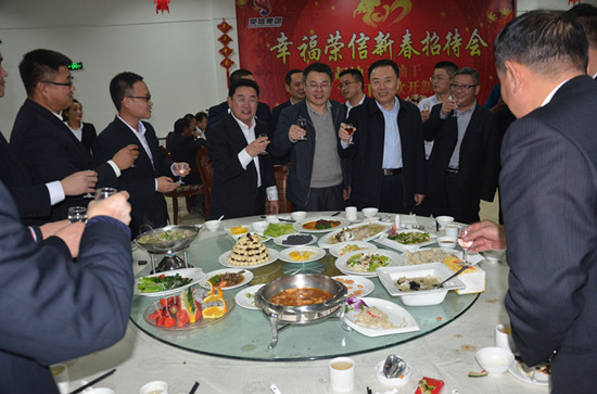 集團(tuán)公司董事長王謹(jǐn)在祝酒辭中說到,由于大家的辛勤付出和共同努力,我們榮信在2016年取得了優(yōu)異的成績,這是全體干部員工忠誠履職的結(jié)果,是員工家屬默默支持的結(jié)果,更是大家團(tuán)結(jié)一心、奮勇拼搏的結(jié)果,并向全體榮信家人表示衷心的感謝。
