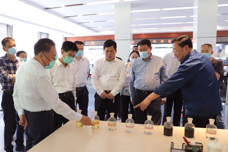 唐洲雁一行在司相芳總經(jīng)理陪同下,首先到恒信科技實(shí)地察看生產(chǎn)情況,隨后來到集團(tuán)能源控制中心,聽取關(guān)于企業(yè)產(chǎn)能規(guī)模,高水平環(huán)保設(shè)施和措施,榮信循環(huán)經(jīng)濟(jì)產(chǎn)業(yè)園新能源新材料規(guī)劃項(xiàng)目,甲醇制乙醇、氫能源等產(chǎn)業(yè)鏈的發(fā)展趨勢、廣闊市場前景等情況介紹。唐洲雁對榮信的先進(jìn)裝備、智能化水平、循環(huán)經(jīng)濟(jì)產(chǎn)業(yè)鏈條、資源綜合利用、經(jīng)濟(jì)生態(tài)社會效益以及未來產(chǎn)業(yè)布局規(guī)劃給予了高度評價。