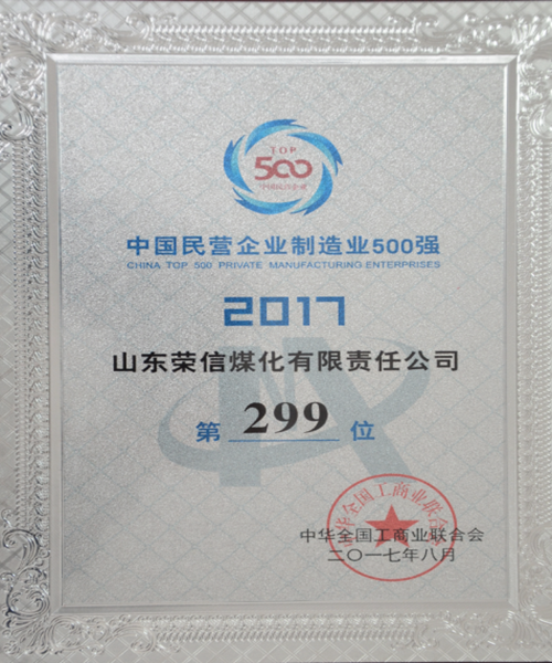近期,由全國工商聯發(fā)布的“2017中國民營企業(yè)制造業(yè)500強”榜單在濟南揭曉,榮信集團以1123478萬元的營業(yè)收入,位列榜單299位。由中國企業(yè)聯合會、中國企業(yè)家協(xié)會發(fā)布的“2017中國制造業(yè)企業(yè)500強”榜單在南昌揭曉,榮信位列榜單405位。