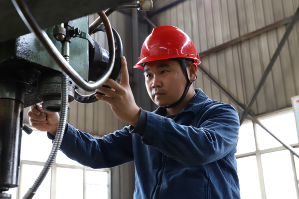 “我就是榮信的一顆螺絲釘,愿意為榮信這臺大機器順暢運轉(zhuǎn)默默奉獻?!彼麜r常開玩笑說道。在多年的工作中,他深深體會到,干維修如同醫(yī)生看病,技術(shù)高明才能手到病除。初出茅廬的他當(dāng)時也有些不知所措,無從下手。幸運的是,在榮信有著一些樂于助人像一家人的老師傅。老師傅經(jīng)常鼓勵他:“別怕累,只要做得多,肯定學(xué)得多。” 聽了師傅的肺腑之言,他觸動很大,便暗暗下決心,一定要好好干,干出點名堂來。遇到難題他不懂就問,兜里經(jīng)常還裝著一個本子,對一些復(fù)雜活或復(fù)雜的結(jié)構(gòu)、備件型號都記錄下來。閑時還從廢舊液壓站找來一些零部件,反復(fù)拆卸安裝研究,苦練基本功。榮信的夏季驕陽如榮信人的熱情一樣似火,每天他都是兩手油污、一身汗水。經(jīng)過幾個月鉆研努力,他成了維修的技術(shù)尖子!每當(dāng)聽到操作工說“好了”,每當(dāng)看到設(shè)備運轉(zhuǎn)正常了,他笑了,感到很欣慰,那種發(fā)自心里的快樂溢于言表,真正體會到付出就會有收獲的喜悅。