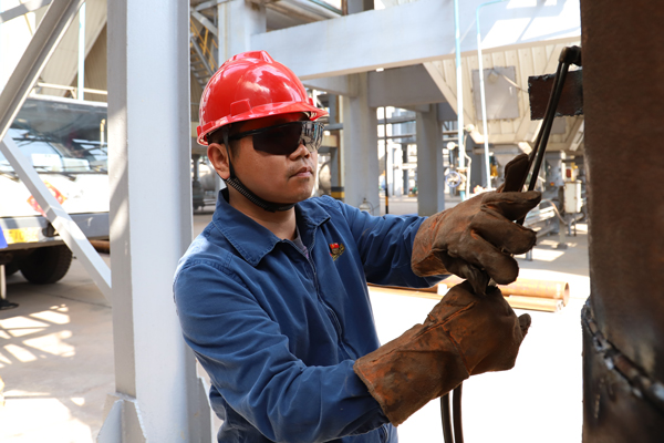 他們滿面灰塵,卻擋不住前行的腳步,他們滿眼疲憊,卻擋不住對維修的追求,白色板房便是他們的家。他們奔赴檢修現(xiàn)場,戰(zhàn)高溫、斗酷暑,上框架、爬豎梯,總是在生產(chǎn)線上摸爬滾打,汗水如雨飄灑,哪兒需要他們,他們就在哪兒出現(xiàn)。他們是機修車間的“藍領(lǐng)驕子”,是檢修現(xiàn)場的主力軍。安全員彭帥就是這些檢修將士中出色的一個。