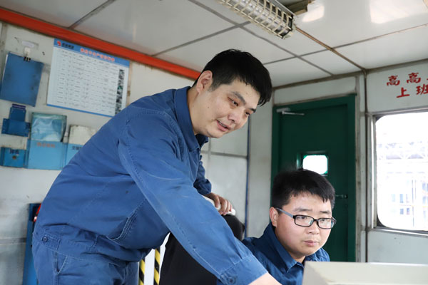 新竹高于舊竹枝,全憑老干為扶持。工作年限長、業(yè)務(wù)水平扎實、操作經(jīng)驗豐富,使他主動擔(dān)任起了區(qū)域內(nèi)“老師”的角色。不論是不是他徒弟,只要同事遇到了設(shè)備或者操作上的問題,他都會積極幫助解決。3#推焦車司機步士元到崗時間不長,一些操作還很不熟練,崔連興主動利用檢修時間給步士元分享自己的操作經(jīng)驗,并結(jié)合實際去現(xiàn)場演示,解決了步士元的疑慮和困擾。梁振亞也是剛分配到他車輛上的一名爐前工,只要一有時間他就給梁振亞講授知識、傳授經(jīng)驗。崔連興總是這樣毫無保留地將知識、技能、經(jīng)驗、職業(yè)理念教給新來的員工,幫助、帶動、啟發(fā)他們快速成長,更快的了解本崗位知識,掌握規(guī)范的操作。在日常班組技術(shù)培訓(xùn)和應(yīng)急培訓(xùn)中,他也總是帶頭講解理論知識、演示現(xiàn)場實際操作,使區(qū)域內(nèi)的員工不斷提升自身的業(yè)務(wù)水平,營造出和諧互助的團隊氛圍。
