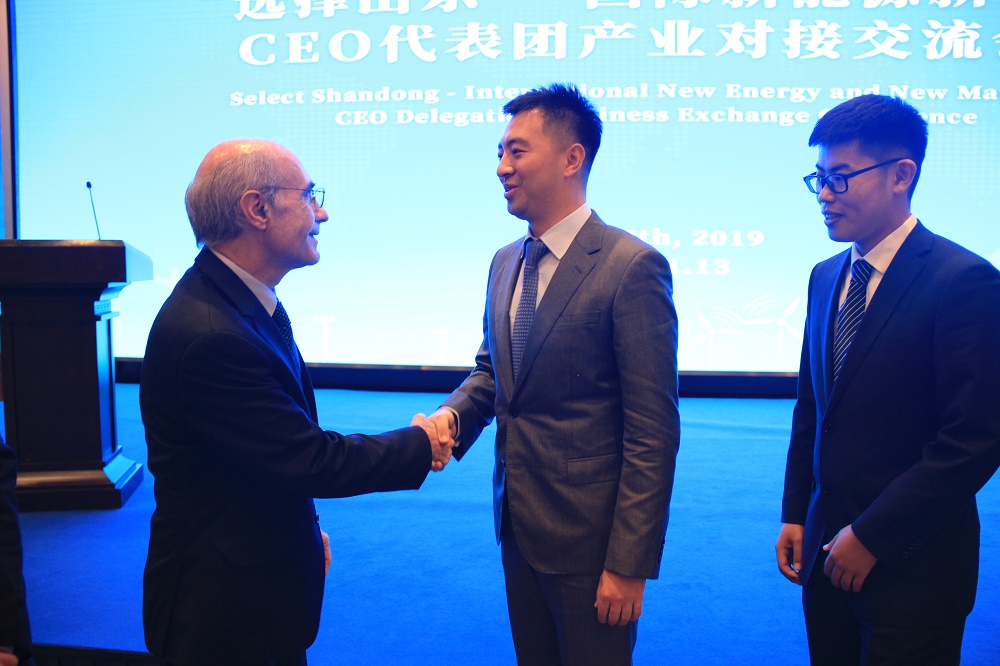 對接會分上午和下午兩個階段,上午主要為路演推介,來自美國、加拿大、以色列、西班牙、瑞士等國家的17家企業(yè)以及山東省9家企業(yè)CEO及高管登臺路演,推介氫能、燃料電池、風(fēng)能、納米材料等領(lǐng)域的新產(chǎn)品與新技術(shù);下午96家省內(nèi)企業(yè)與國際企業(yè)進(jìn)行了一對一洽談對接。